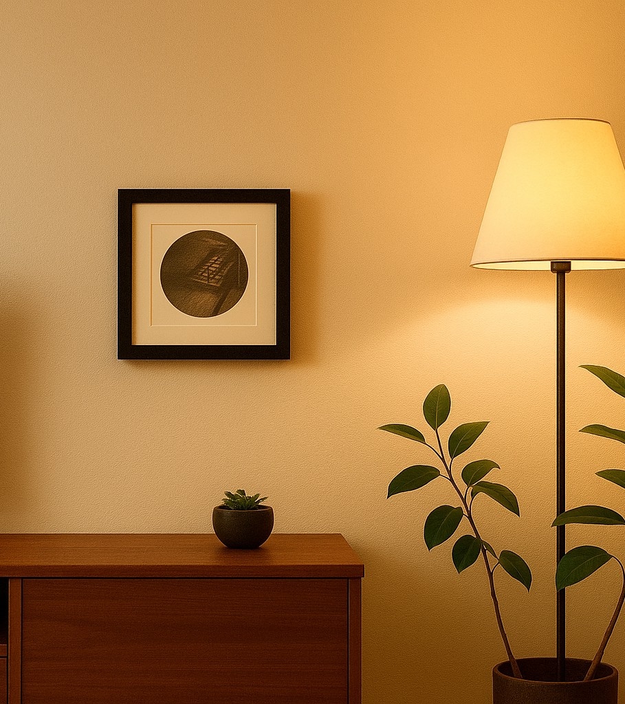 目線よりやや低めに掛けると、夜の情景を「見下ろす」感覚がより自然に体験できます。
